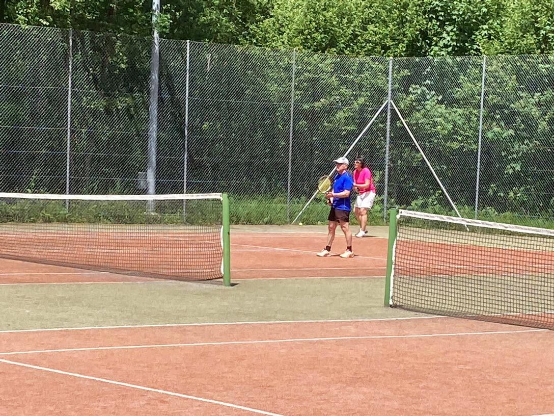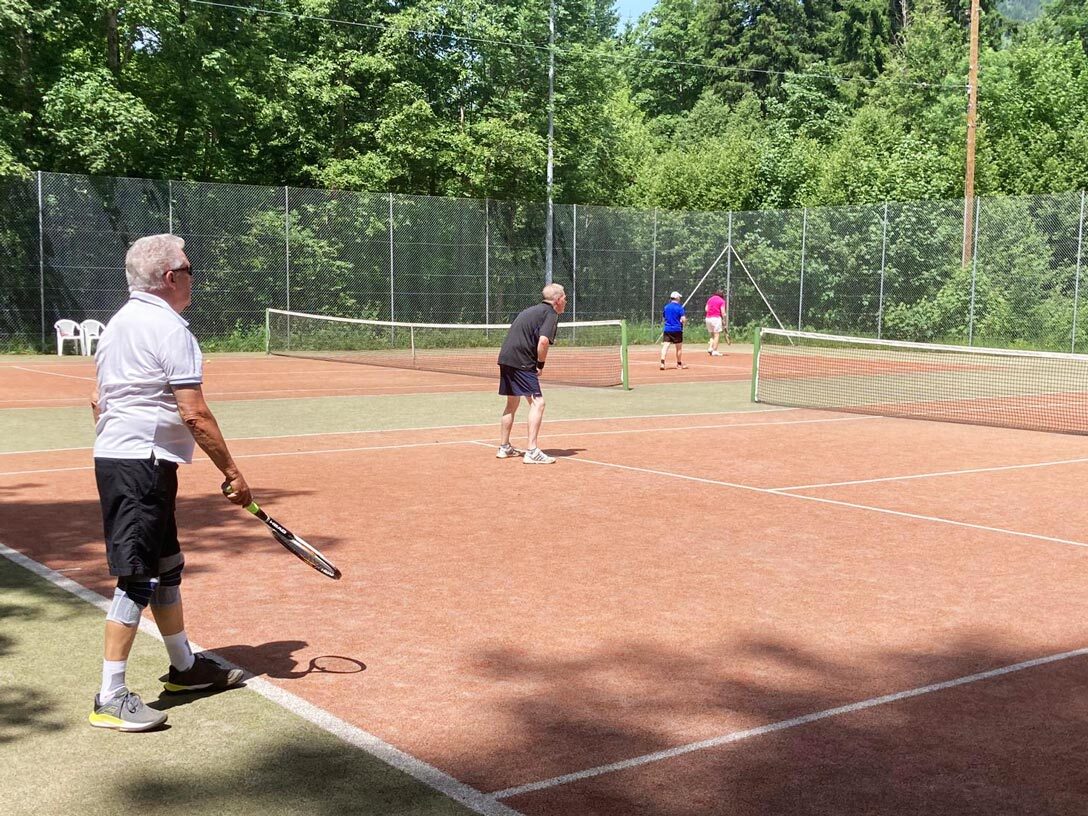 Ab 9.30 Uhr wurde dann der Schläger geschwungen – die Spielpaarungen wurden ausgelost, ganz à la «Glück gehört auch zum Tennis». Das Wetter präsentierte sich von seiner Schokoladenseite: Sonnenschein, der fast mit dem Glanz in den Augen der Teilnehmenden konkurrierte – wären da nicht ein paar wohltuende Wolken gewesen, die uns vor dem Dahinschmelzen bewahrten.