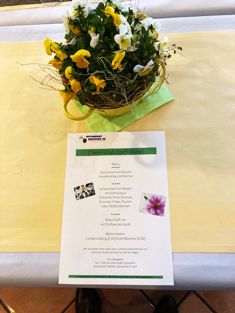 Am vergangenen Samstag konnten wir auf allen 4 Plätzen des TUS unser Tennis-Können beweisen. Nach spannenden Matches und beim gemütlichem Beisammensein durfte natürlich auch das Kulinarische nicht fehlen. Am Abend trafen wir uns in der Brassi Steffisburg. Bei gutem und reichlichen Essen und Trinken liessen wir den Abend gemütlich ausklingen. Herzlichen Dank an das Brassi-Team für das ausgezeichnete Essen und die tolle Bewirtung.