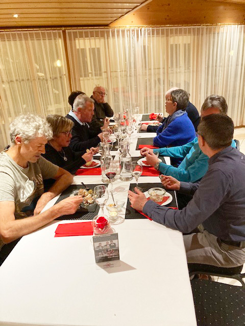 Der gemütliche Teil fand dann im Gasthof Schnittweierbad, wo wir uns ab 18 Uhr zum verdienten Apéro mit anschliessendem Nachtessen trafen. Dabei folgten auch die meisten Partnerinnen der Einladung und trugen ihrerseits zur guten Stimmung und spannenden Gesprächen bei. Auch das Essen und der Wein schmeckten allen vorzüglich. So genossen wir die vergnügte Atmosphäre bis spät in die Nacht hinein und machten uns schliesslich gesättigt und zufrieden auf den Heimweg.