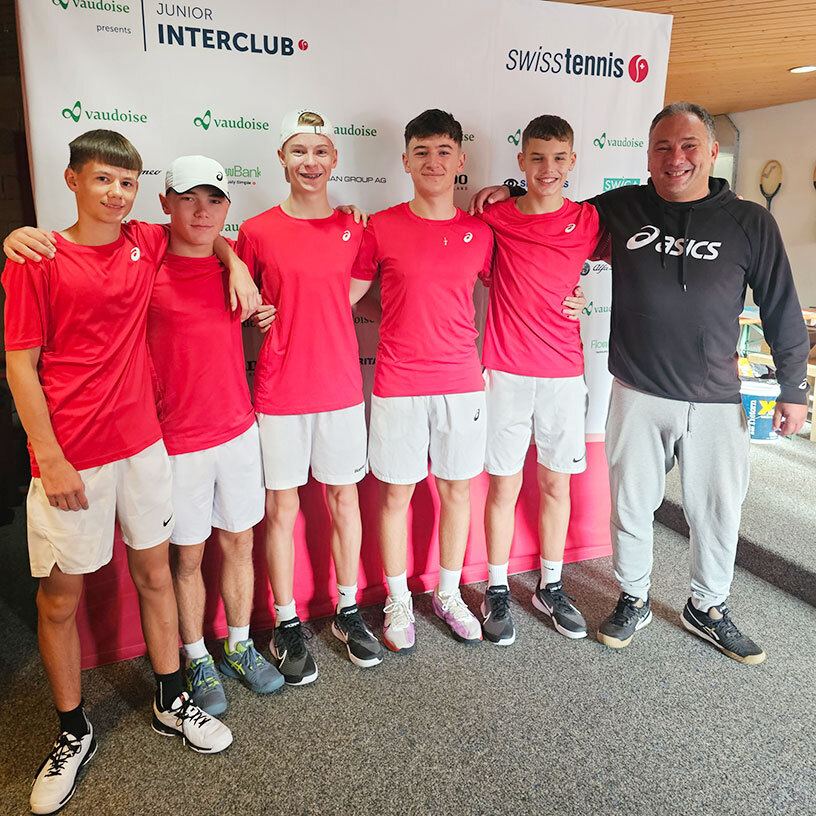 Die Boys U15 mit Nico Matter, Janis Hug, Leon Gospodinov, Lorin Vonlanthen und Dylan Watterton erlebten im wahrsten Sinn des Wortes einen Hitchcock-Halbfinal: Gegen Genève Eaux Vives stand es nach den Einzeln 2:2 (Satzgleichstand). Das Doppel 1 unterlagen sie knapp in drei Sätzen. Dies bedeutete, dass Doppel 2 ohne Satzverlust hätte gewonnen werden müssen. 7:6 im ersten Satz für uns! Der 2. Satz ging hin und her. Bei 5:4 und no Ad hatten wir Matchball und verwerteten ihn. Riesige Emotionen, viel Freude und Jubel. Im Finale gegen LTC Winterthur war die Luft etwas draussen und Winti erwischte einen super Tag. Man kann aber durchaus sagen, dass Silber gewonnen und nicht Gold verloren wurde.